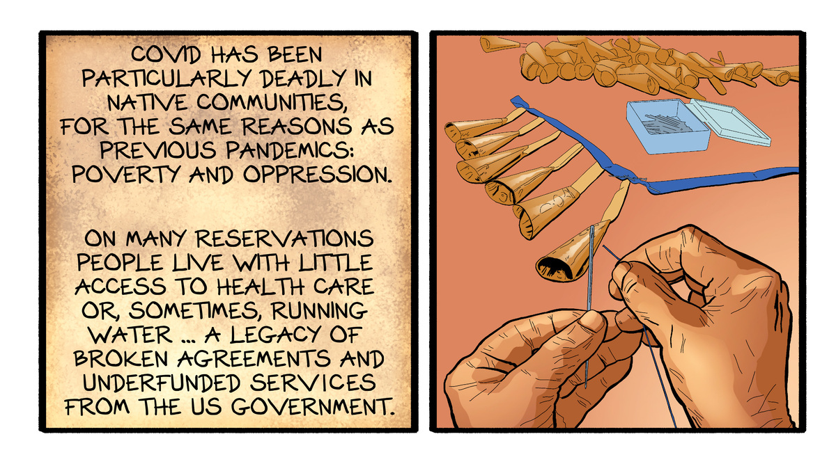 Arigon Starr began her art career in kindergarten. “I was five and my teacher told me I was the best artist in the class. Imagine that!” smiled Arigon. Arigon’s parents and sister were early supporters. “Even with their limited budget, Mom and Dad would always make sure I had sketch books, pencils, paints, whatever I asked for,” she added. Arigon began drawing comics and painting in middle school. Arigon’s entertainment career took her to Los Angeles, where she worked behind the scenes at various production companies. She kept drawing and landed a freelance art gig with the Disney Stores. “That job enabled me to become a full-time artist, musician, songwriter and eventually an actor, playwright and comic book creator,” said Arigon. Her acting work with Native Voices at the Autry, a theater company dedicated to producing new plays from Native playwrights lead her to create “Super Indian,” the humorous story of a reservation boy who ate tainted commodity cheese and gained superpowers. “When I first started drawing ‘Super Indian,’ I worked in the traditional method – pen & inks on Bristol board. Wanting to add color, I wasn’t sure which way to go. Having attended an informational panel at San Diego Comic Con featuring digital coloring techniques taught by Brian and Kristy Miller (Hi-Fi Color for Comics), my eyes opened to world of digital art production,” marveled Arigon. Arigon’s works are now created with a Mac computer, Wacom tablet and digital apps from Adobe (Photoshop, Illustrator, InDesign) and Procreate for the iPad Pro.